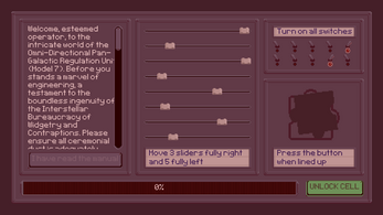 The game is a small puzzle-platformer where you are a small robot and need to escape from prision in search of a new life.